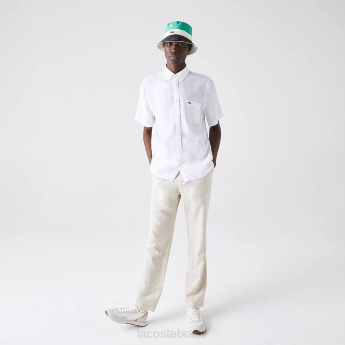 opte por esta confortável camisa de manga curta em linho com bolso no peito. cubra-o com uma camiseta ou abotoe-o até o fim.