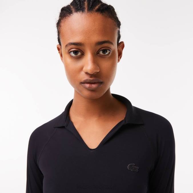 Lacoste mulheres polo manga longa cropped preto P2PX2483 roupas